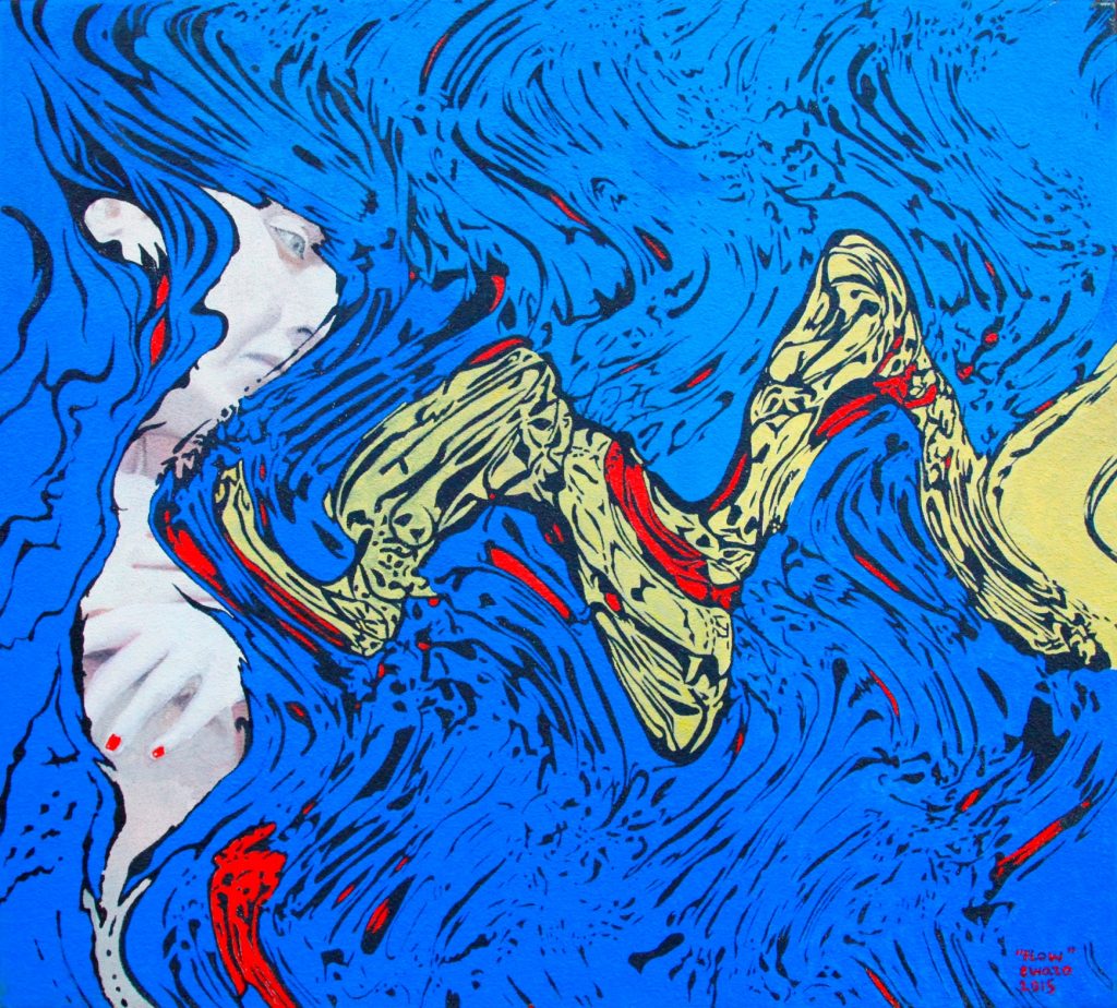 „Flow”, Ewa Żochowska, olej na płótnie, sygn. p.d., opis na odwrocie, 1100 cm x 100 cm, 2015 / w kolekcji prywatnej