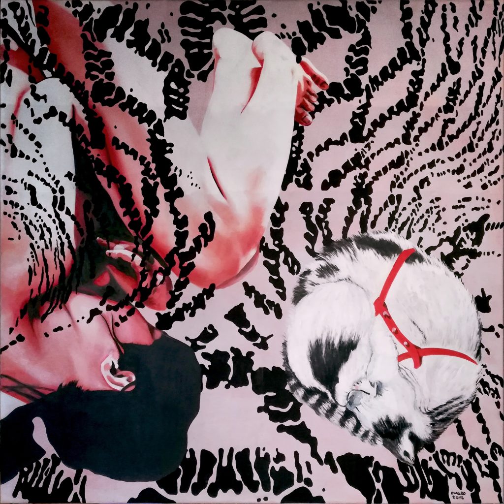 „Jump”, Ewa Żochowska, olej na płótnie, sygn. p.d., opis na odwrocie, 90 cm x 90 cm, 2014 / własność artystki / zapytaj o cenę i dostępność